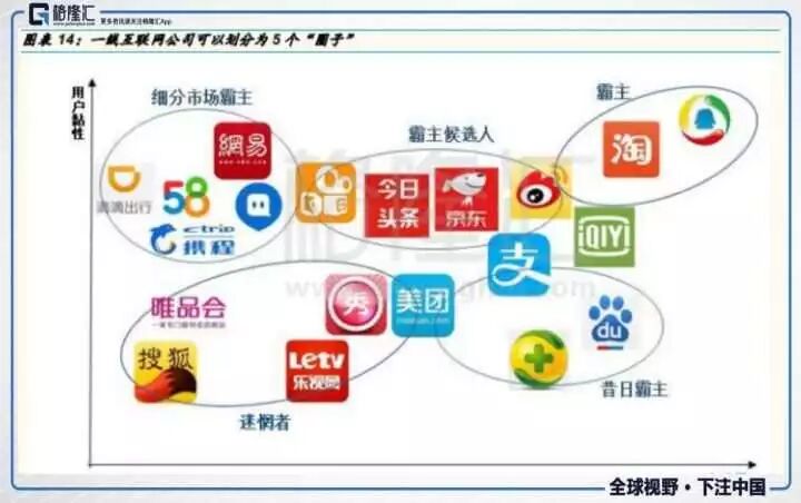 上个阶段名不见经传的BAT作为这个时期的绝对主角,它们在这一阶段干的就是完成自身领域的商业闭环,在互联网的世界中站住脚跟!