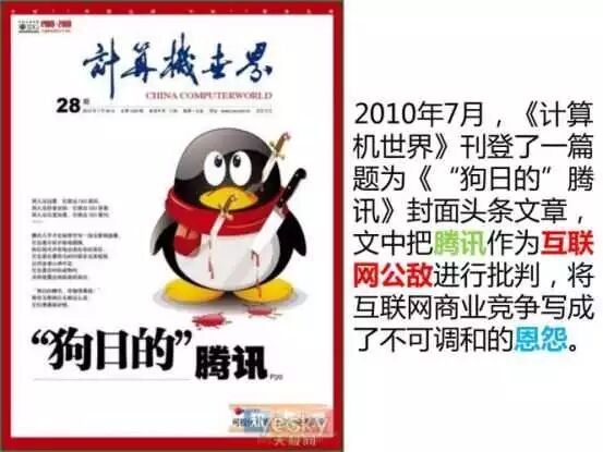 2010年一场天昏地暗的3Q大战,腾讯血流不止,痛过之后腾讯终于明白:围绕客户端打造出来的产品围墙未必能够靠得住,与其与其他对手互相厮杀,不如把资源共享出去,然后再收纳回来,形成一个完整的互联网生态圈来得稳固。这个艰难的决定,竟使得其日后的发展轨迹完全改变,于是生态成了腾讯的关键词。