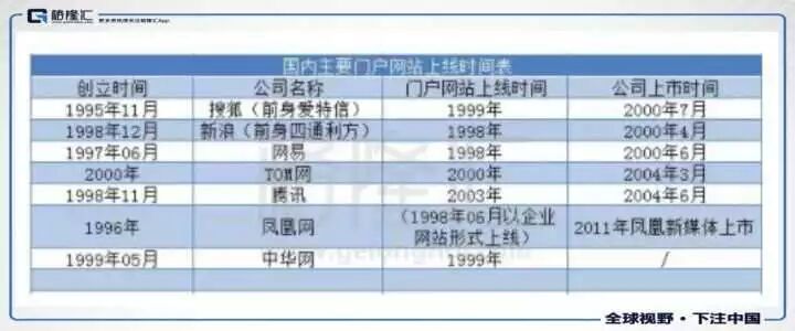 1998年是中国门户网站上线的爆发期,1999 年,搜狐推出新闻及内容频道,奠定了综合门户网站的雏形,开启了中国互联网门户时代。此后,在2000年,新浪、网易、搜狐纷纷在纳斯达克挂牌上市。