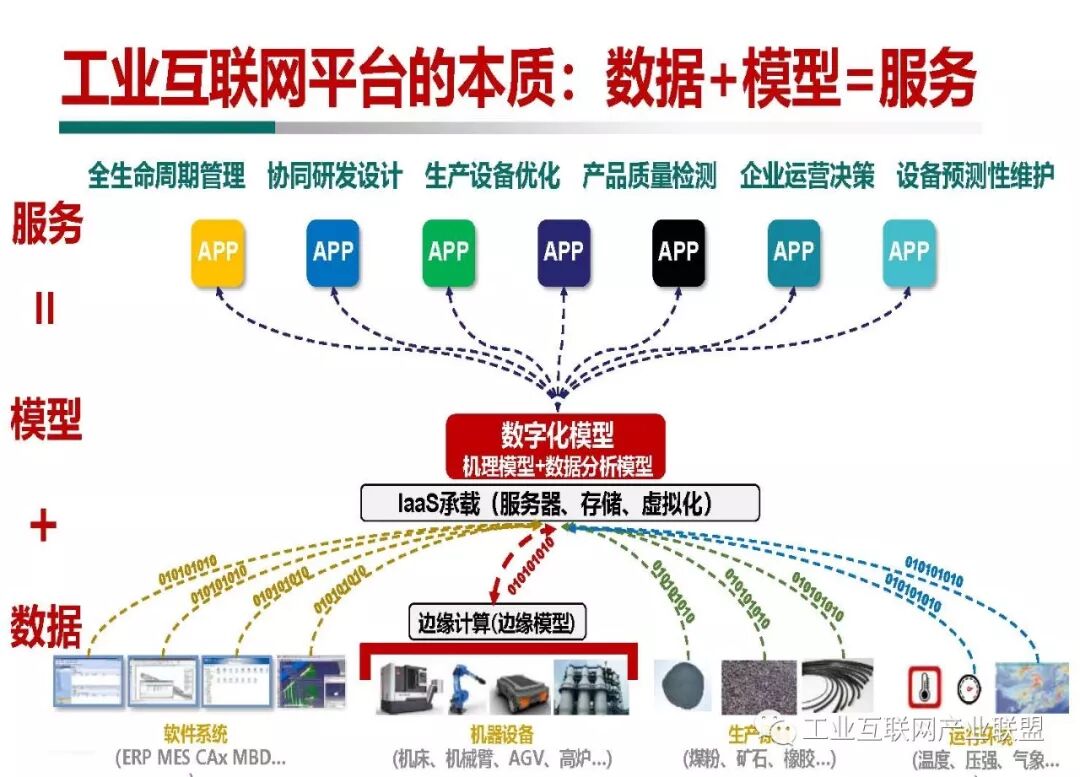 最重要的本质特征就是“数据+模型=服务”,即通过采集软件系统、设备和机器、生产原料等各种各样的数据并把数据输送到云端,再通过云端模型处理提供产品全生命周期、协同研发、生产设备优化、质量监测等各式各样的服务。在这个过程中,工业互联网平台的本质就是通过“数据+模型”为企业创造“服务”。